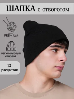Шапка мужская зимняя осенняя вязаная бини с отворотом