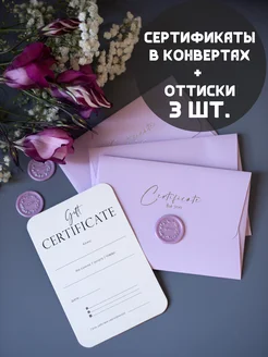 Сертификаты подарочные в конверте с лентой