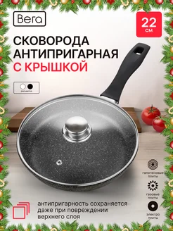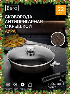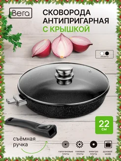 Сковорода антипригарная с крышкой со съемной ручкой 22 см