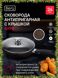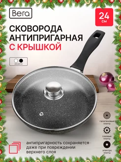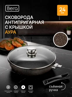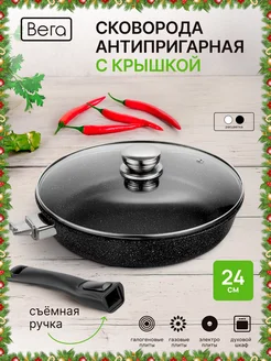 Сковорода антипригарная с крышкой со съемной ручкой 24 см