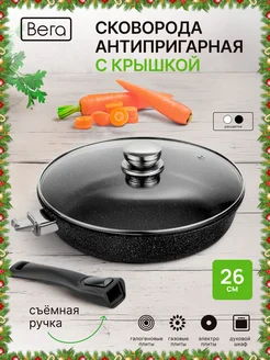 Сковорода антипригарная с крышкой со съемной ручкой 26 см