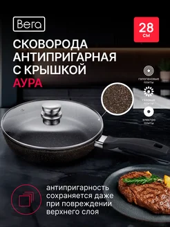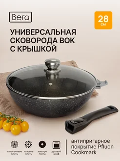Вок сковорода с крышкой антипригарная глубокая 28 см