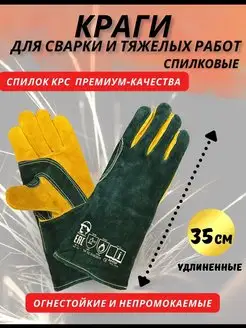 Спилковые рабочие перчатки краги для сварщика ИЗУМРУД 35см