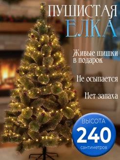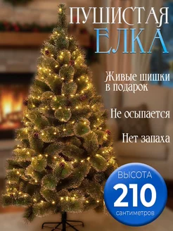 Искусственная ёлка пышная 210 см, c живыми шишками