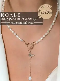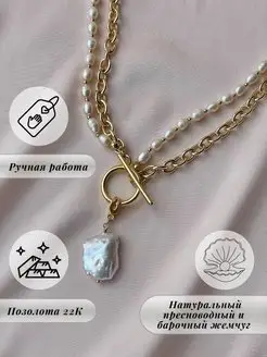 6030 Двойное колье-цепь с кулоном из жемчуга барокко топ NEW