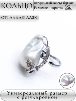 6245 Нежное кольцо с большим жемчугом для невесты на свадьбу