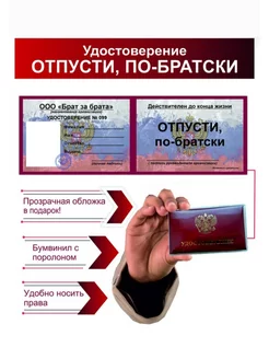 Шуточное удостоверение корочка "отпусти, по-братски"