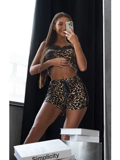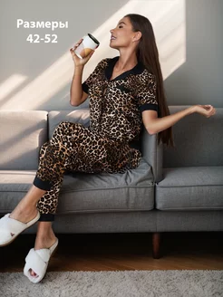 Пижама со штанами и рубашкой леопардовая домашний костюм