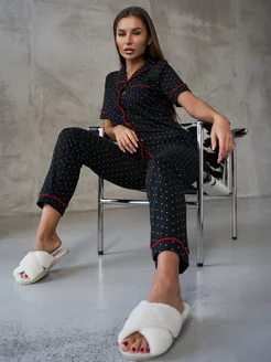 Пижама со штанами и рубашкой домашняя одежда хлопковая