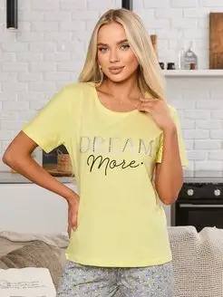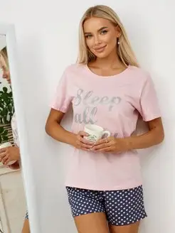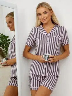 Пижама с шортами и рубашкой домашняя одежда хлопковая