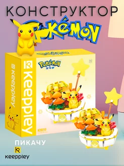 Конструктор покемон Пикачу с цветком, аналог Лего