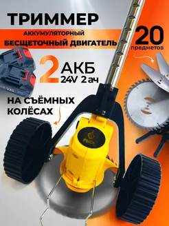 Триммер для травы аккумуляторный садовый на колесах+2 акб