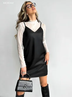 Платье кожаное на бретельках