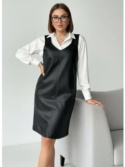Сарафан кожаный офисный