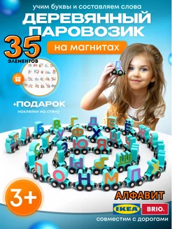 Паровозик детский деревянный на магнитах с буквами алфавит