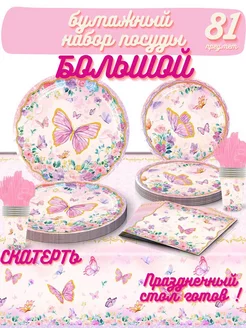 Одноразовая посуда для праздника с бабочками набор