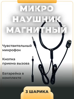 Микронаушники магнитные с aux-гарнитурой - 3 шт + 1бат