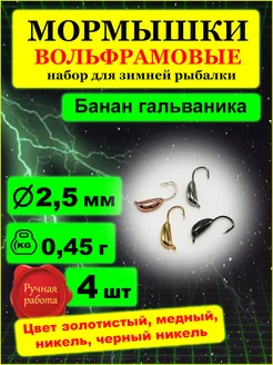 Мормышки вольфрамовые банан гальваника микс 2,5мм