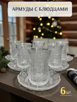 Армуды с блюдцами восточные для чая и кофе набор 6 шт