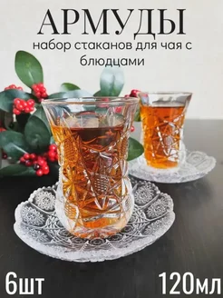Армуды с блюдцами для чая и кофе набор 6 шт