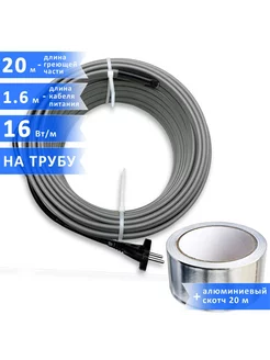 Саморегулирующийся греющий кабель на трубу 20м + скотч 20 м