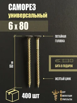 Саморез универсальный 6х80, желтый цинк, 400 шт