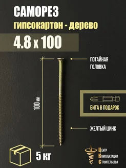Саморез гипсокартон дерево 4.8х100, желтый цинк, 5 кг