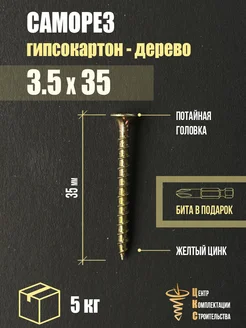 Саморез гипсокартон дерево 3.5х35, желтый цинк, 5 кг