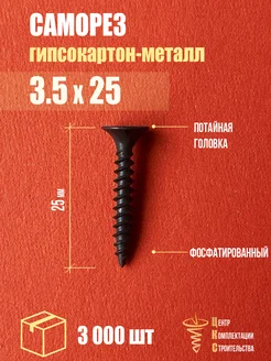 Саморез гипсокартон металл 3.5х25, 3 000 шт