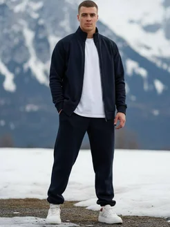 Спортивный костюм с прямыми брюками на молнии без начеса