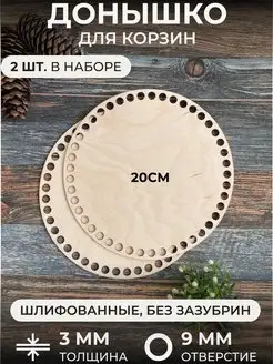 Донышки для вязания корзин из фанеры, круг 20 см, набор 2 шт