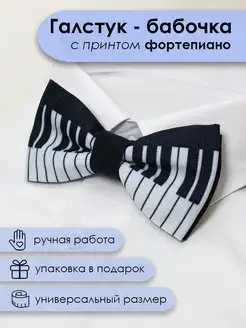 Галстук бабочка черно-белая с принтом клавиши пианино