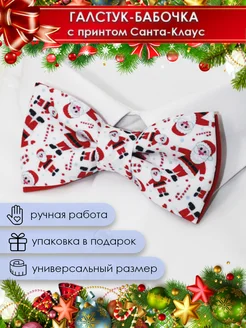 Галстук бабочка с принтом дед мороз на новый год 2026