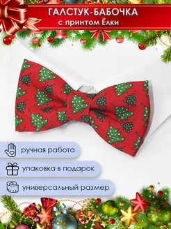 Новогодний галстук бабочка с ёлками праздничный принт