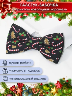 Галстук бабочка с принтом карамельная трость новогодняя
