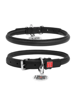 Ошейник Glamour, с QR, кожа, металл, 6 мм 17-20 см, черный