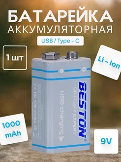 Аккумуляторная батарейка 1000 mah Li-ion крона 9V с Type-C
