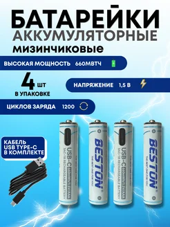 Аккумуляторные батарейки ААА аккумулятор от USB мизинчиковые