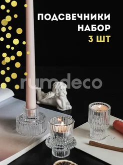 Подсвечники для свечей серые стеклянные набор 3 шт