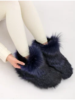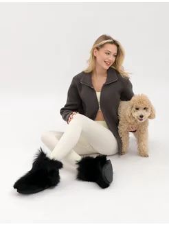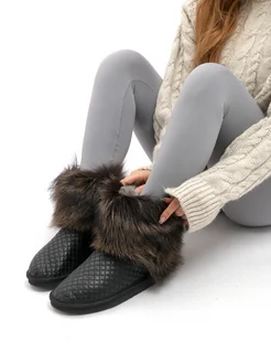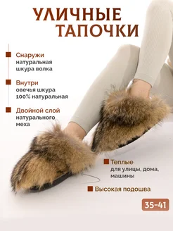 Тапочки уличные с натуральным мехом волка