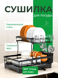 Сушилка для посуды со сливом 2 яруса черная