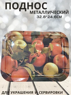Поднос металлический прямоугольный "Яблоки"