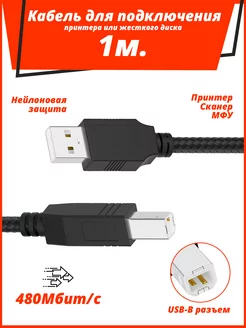 Кабель USB для принтера 1 метр нейлон