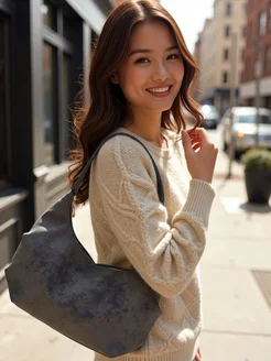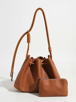 Сумка-мешок женская средняя карамельная, с косметичкой