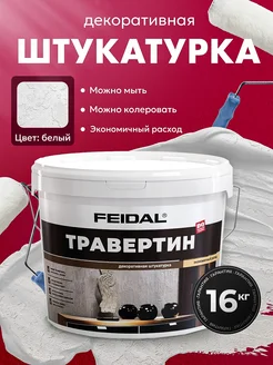 Декоративная штукатурка для стен Травертин, белая, 16 кг