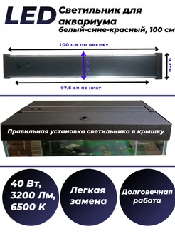 Крышка-светильник для аквариума 60 л с размерами 56*29 см