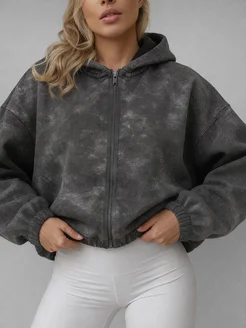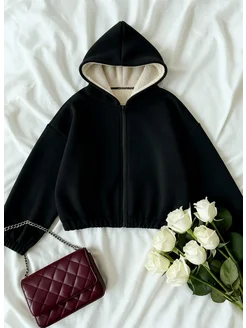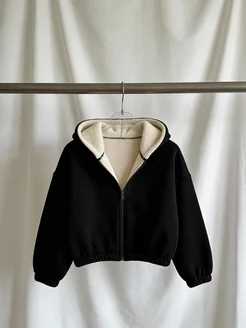 Зип худи двустороннее укороченное с начесом и капюшоном