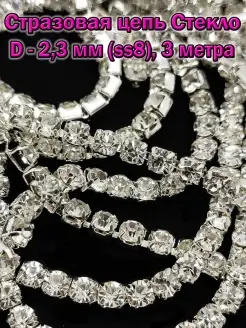 Стразовая цепочка ss8 Crystal на серебристой основе 3 м