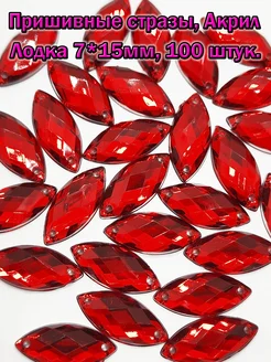 Пришивные стразы акриловые лодочки 7x15 мм, Red