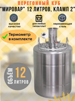 Перегонный куб "Мировар" 12 л, кламп 2", с термометром